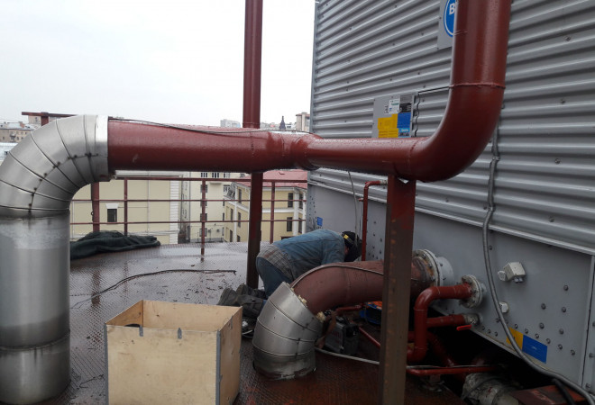 Монтаж градирен на высоте 35 м, высотные работы.