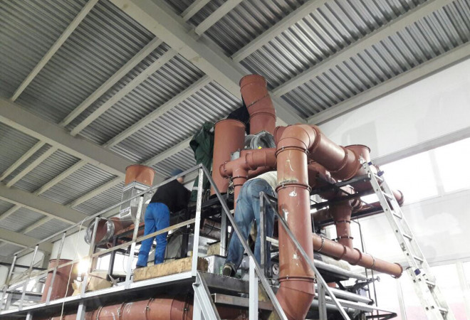 Монтаж вытяжной системы машины печати клеенки 45 000 куб/час.