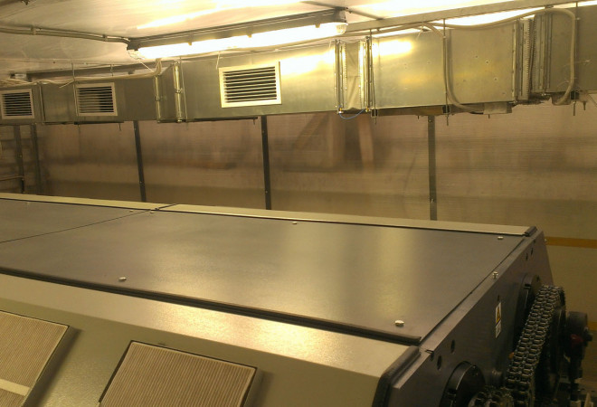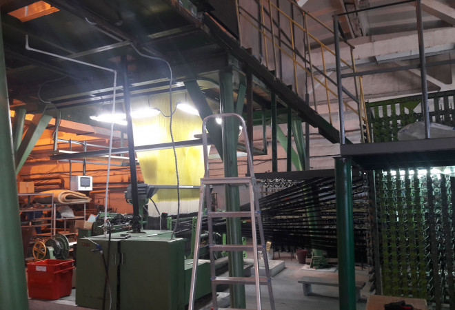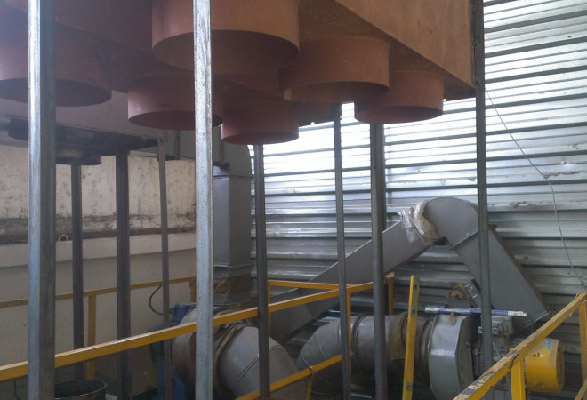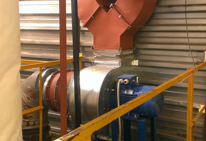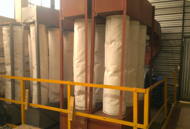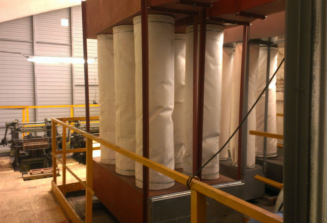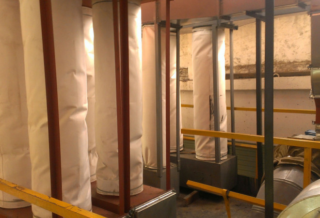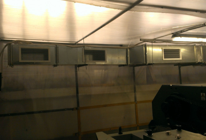 Монтаж системы фильтрации воздуха при ткацком производстве углеволокнистых тканей. Монтаж камеры очистки воздуха станка.